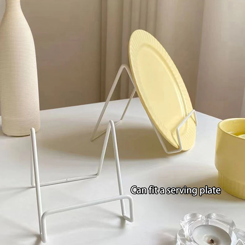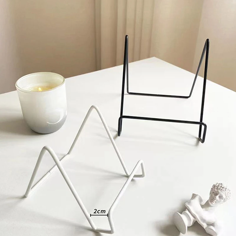 Decorative iron stand available in white, gold, or black. Made for displaying plates, books, small pieces of art, framed art, etc.